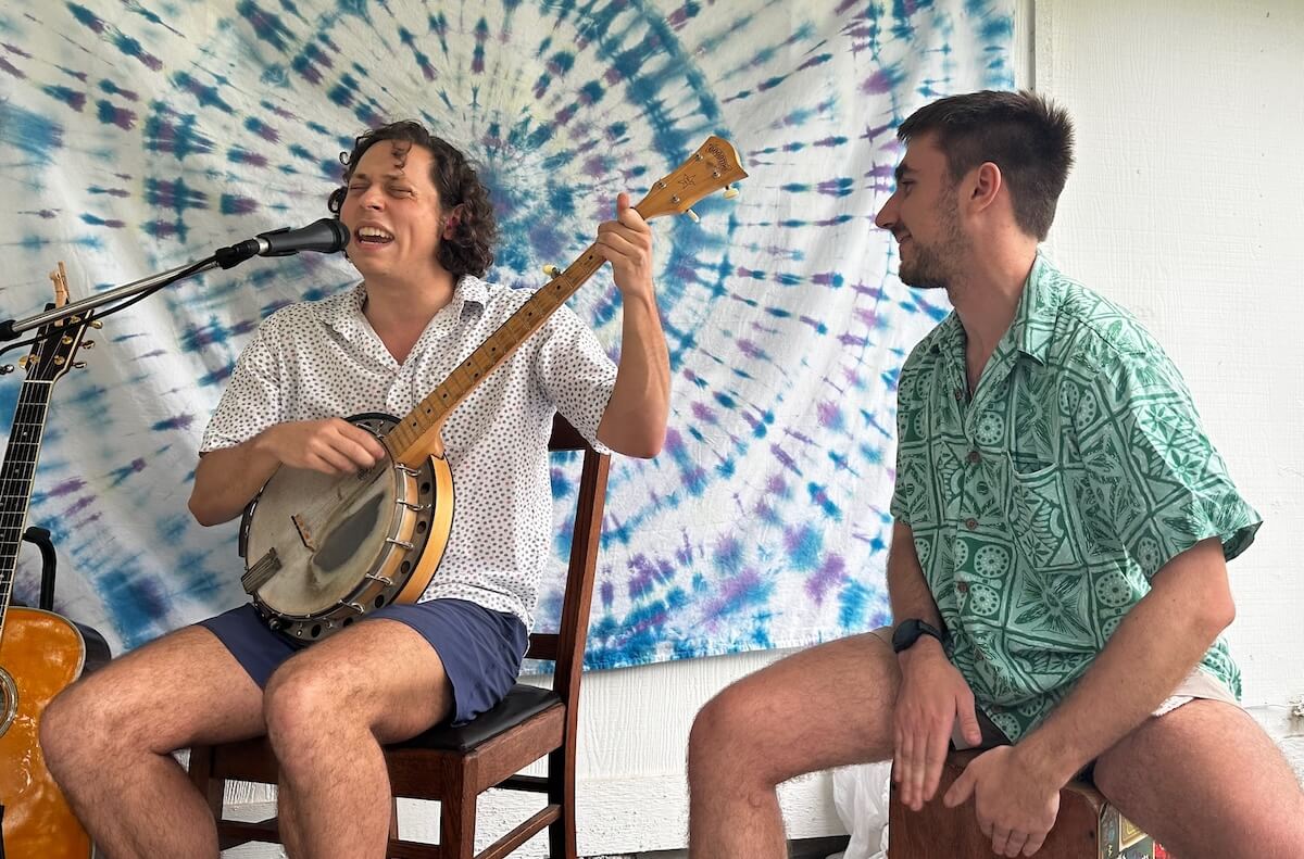 Joey and I started writing bluegrass and folk songs during the summer of 2023 and by the fall we had written five original songs that told stories of heartbreak, traveling, elusive wizards, and more. Along the way we found arrangements with guitar, banjo, harmonica, ukulele, cajon, and our rugged harmonies. Ask us to play our hit single, Gilmore.